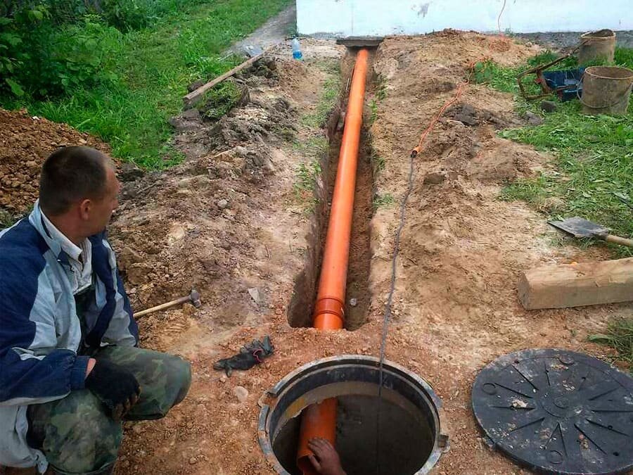 Слив канализации в частном доме по территории участка осуществляется при помощи самотечной сети. Для монтажа используют специальные канализационные трубы из ПВХ, отличающиеся повышенной прочностью. В отличие от материалов для внутренней сети эти трубы имеют оранжевый цвет.